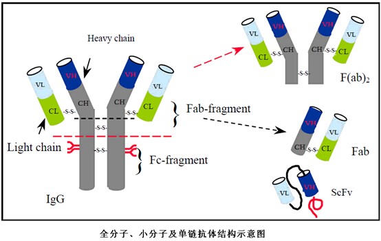 抗體的Fab區(qū)域含可變區(qū)和恒定區(qū),可以與特異的抗原結(jié)合,F(xiàn)ab抗體片段藥物有更好的穿透力。只含有一個(gè)Fab臂,分子量在~50kDa。Centocor公司的ReoPro(abciximab)是重組嵌合Fab抗體片段。