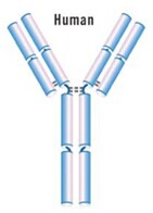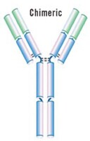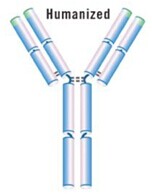 用人IgG的恒定區(qū)取代小鼠IgG的恒定區(qū),保留鼠單抗的可變區(qū)序列,形成一個(gè)人-鼠雜合的抗體。例如:Idec?pharmceutical,Genentech的小鼠抗CD20抗體,含人IgG1恒定區(qū),用于治療B淋巴瘤。