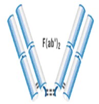 兩個(gè)Fab通過(guò)二硫鍵連接形成F(ab)2。分子量在~100kDa。2011年FDA批準(zhǔn)的Centruroides(Scorpion)Immune?F(ab)2是治療蝎毒的F(ab)2抗體片段。