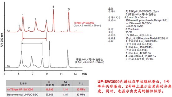 1.?對標準蛋白質的分離(與現有產品SW系列色譜柱的比較)