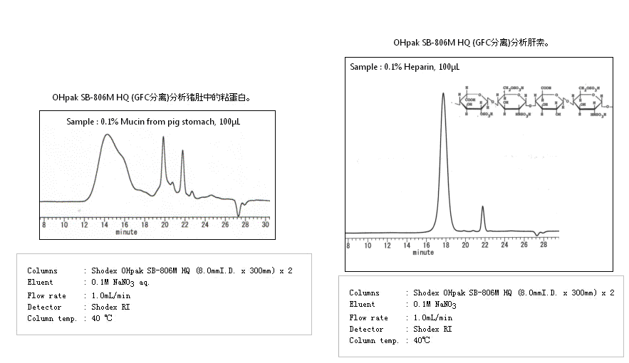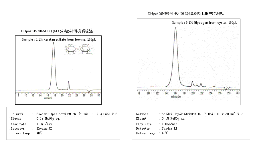 SB-806M HQ色譜柱是聚合物基質的水溶性SEC色譜柱,適用于各種分子量范圍的測定。溶劑可用DMF替換(除SB-802 HQ和SB-807 HQ以外),可分析極性聚合物。SB-804 HQ、SB-805 HQ可用于測定明膠的平均分子量。SB-806M HQ色譜柱適用于分析分子量分布寬樣品的混合填料色譜柱。