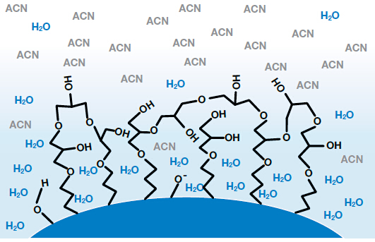 Luna HILIC柱是硅膠表面被交聯(lián)的二醇基團覆蓋,在親水作用液相色譜(HILIC)條件下提供極性選擇性。