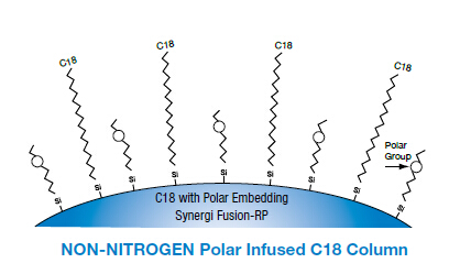 Synergi Fusion-RP反相色譜柱是極性嵌合的C18固定相,提供平衡的極性與疏水選擇性。